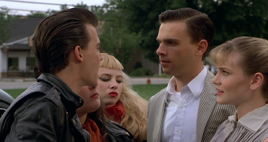 Apesar da sinopse “séria” da história, não se deixe enganar: Cry-Baby é puro pastelão. O musical de Waters serve muito mais como uma homenagem aos filmes B sobre delinquência juvenil – subgênero que era bem popular nos EUA em décadas passadas. Trata-se ainda de uma sátira interessante aos musicais juvenis que fizeram muito sucesso e consagraram vários astros do cinema hollywoodiano (vide Grease – Nos Tempos da Brilhantina).