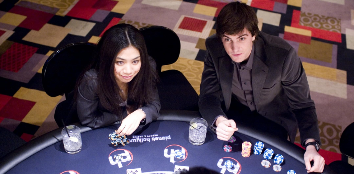 Com a promessa de permanecer no esquema apenas até conseguir o dinheiro que precisa para custear a faculdade, Ben logo se vê seduzido por um estilo de vida que sempre lhe parecera distante. Sua transformação – de nerd retraído à figura confiante e, por vezes, arrogante – encontra em Sturgess um intérprete convincente, que sustenta essa virada sem torná-la abrupta. Ao mesmo tempo, o filme acerta ao explorar Las Vegas como uma extensão desse deslumbramento do personagem, com uma encenação que enfatiza o brilho, o excesso e a velocidade daquele ambiente – em contraste ao cenário quase opaco e burocrático de sua vida pregressa. Assim, essa virada de chave não apenas transforma o protagonista, mas também orienta a própria lógica estética da obra.